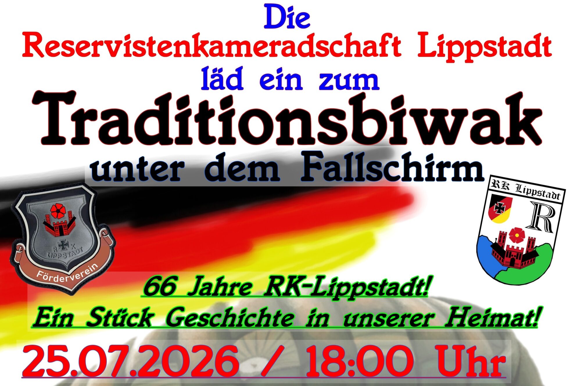Die Reservistenkameradschaft lädt ein zum Traditionsbiwak unter dem Fallschirm!
